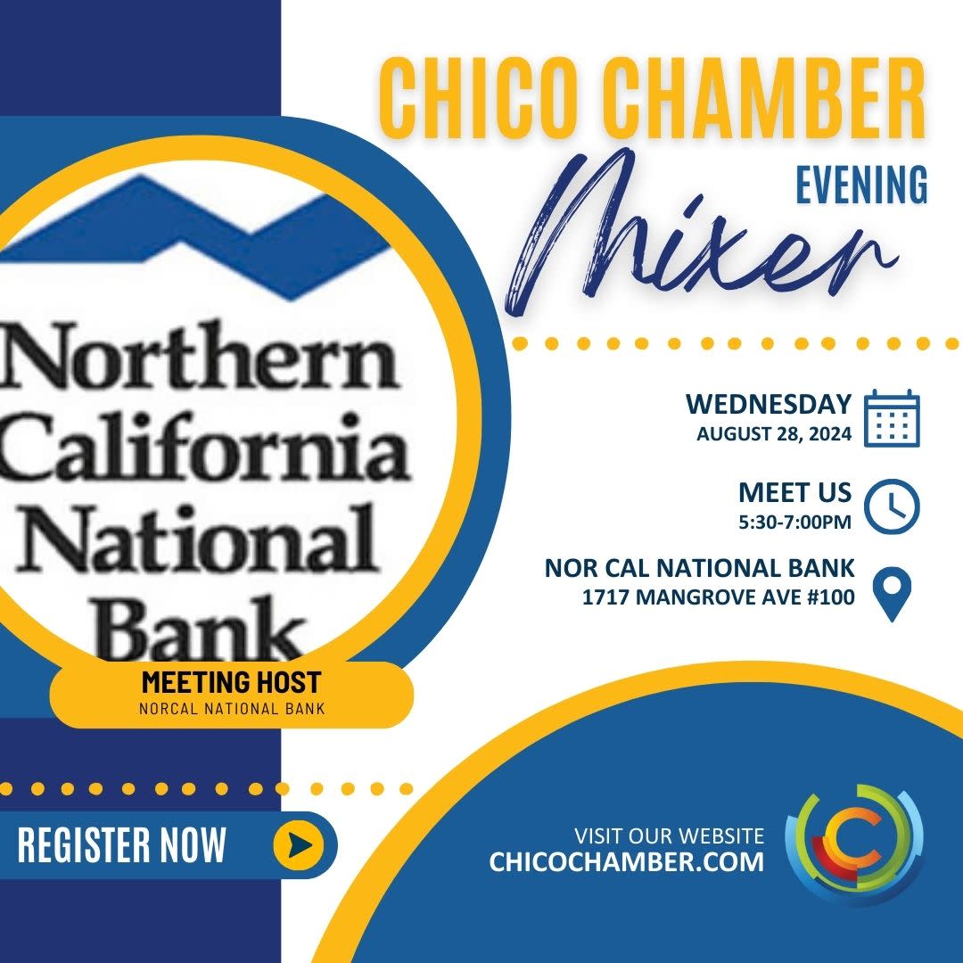This event takes place from 5:30-7:00pm am at Northern California National Bank, located at 1717 Mangrove Ave #100 in Chico.