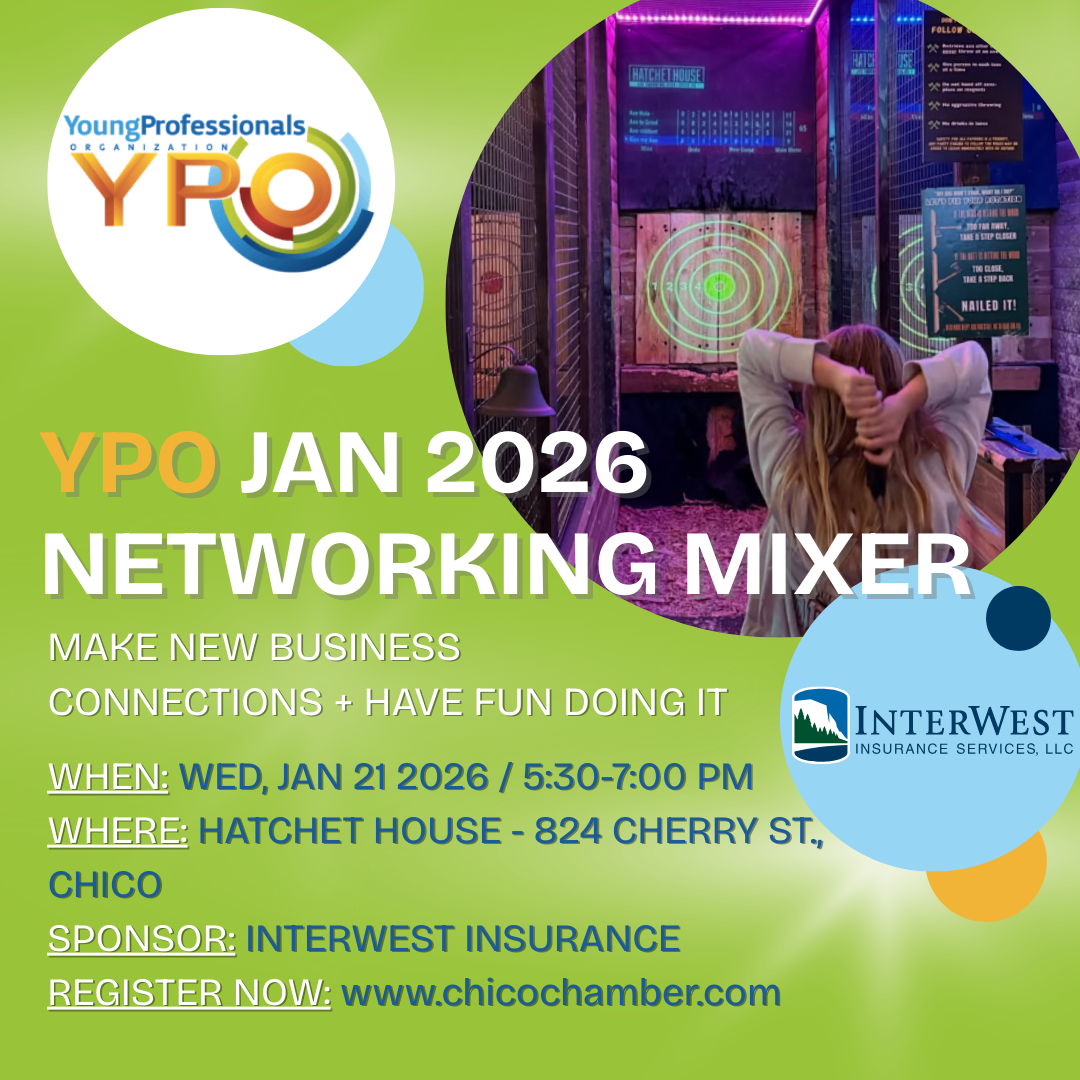 A casual networking mixer for Chico’s young professionals to connect, converse, and build community. Open to members and non-members.