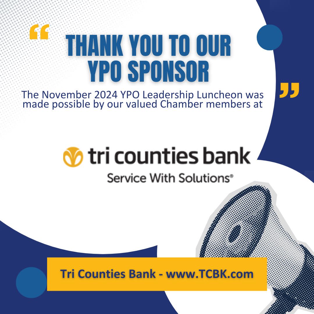 * A very special THANK YOU to our November 2024 YPO Sponsor, Tri Counties Bank. Your contribution is helping us shape the next generation of leaders!